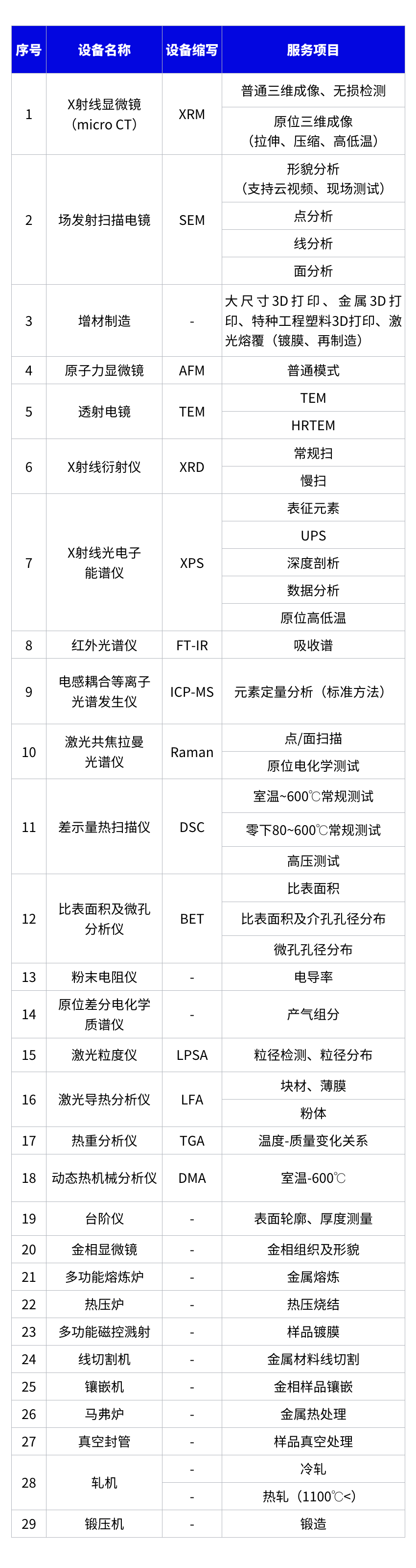 目前,中心已擁有場發射掃描電子顯微鏡、x射線顯微鏡、增減材金屬3D打印等專業儀器設備,同時通過儀器設備資源共享對外可提供無損檢測、三維結構成像、形貌觀察、元素分析、金屬及特種工程塑料3D打印、X射線衍射、比表面積及微孔分析等100余項服務。