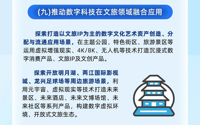 文旅領域探索打造以文旅IP為主的數(shù)字文化藝術(shù)資產(chǎn)創(chuàng)造、分配與流通應用場景,探索開放明月湖、兩江國際影視城、龍興足球場等周邊旅游場景。