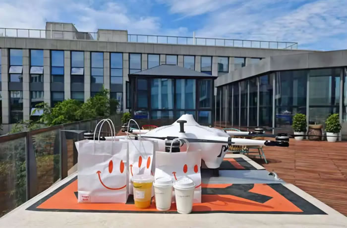 在這里,用無人機送外賣是件稀松平常的事。只需要進入指定小程序,像逛淘寶一樣挑選好飲品,點擊下單,勾選無人機配送。后臺的工作人員便通過飛控系統對無人機下達指令,只需稍等十幾分鐘,無人機就會按著既定航線,帶著貨物飛至停機坪,便可拿取剛“新鮮出爐”的外賣了。