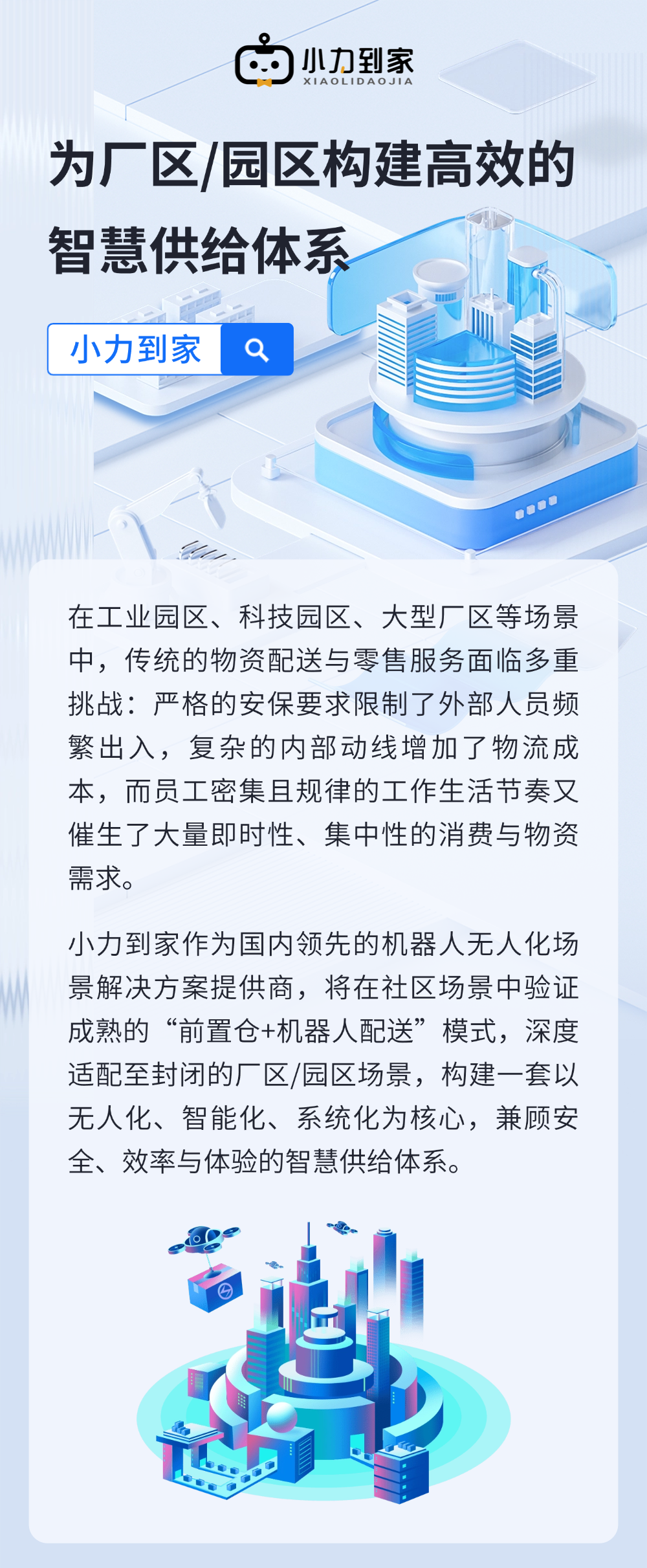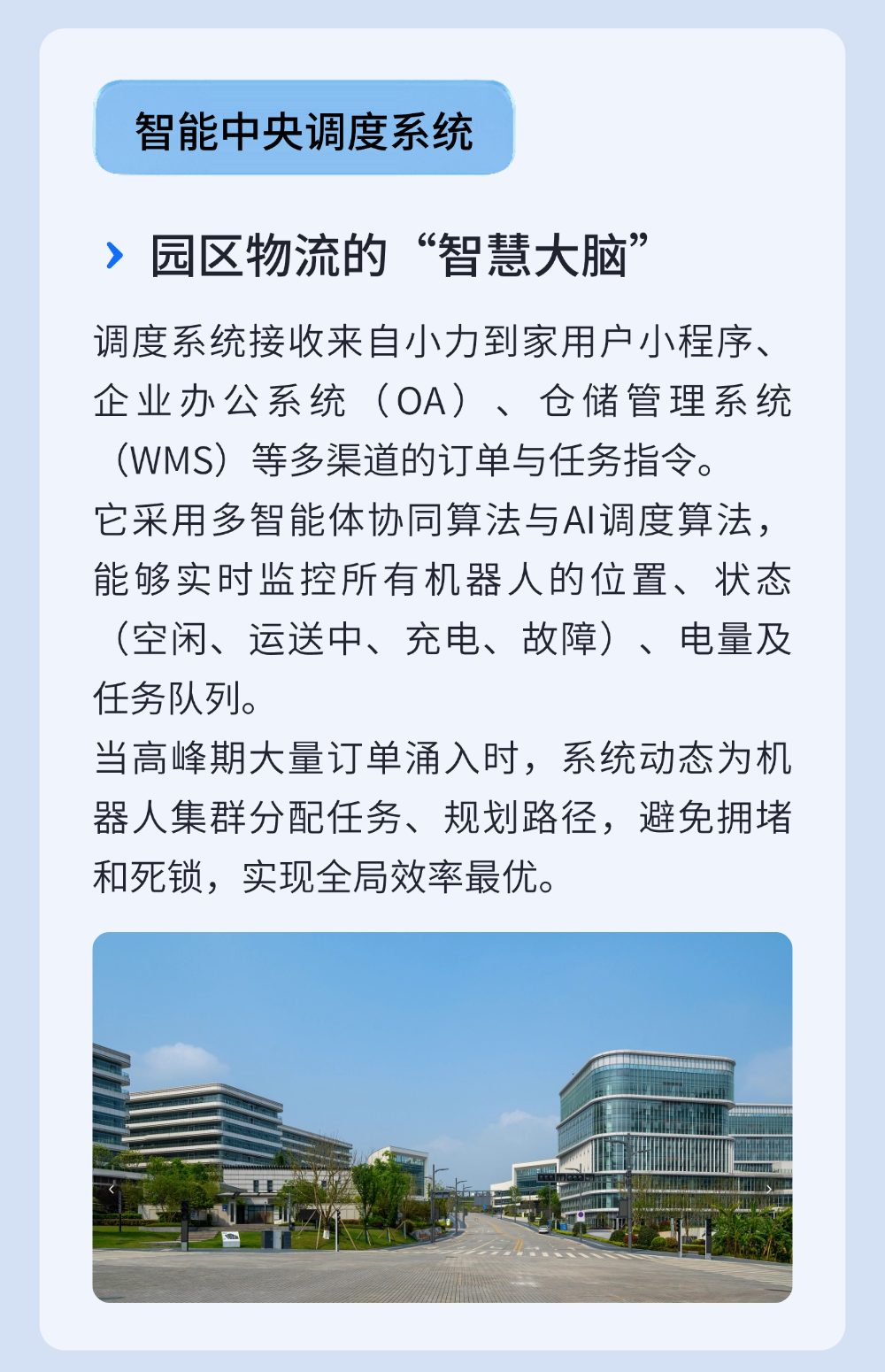 科研成果 以“產業化”為核心發展目標,助力重慶經濟發展 小力到家:為廠區/園區構建高效、安全的智慧供給體系 在工業園區、科技園區、大型廠區等場景中,傳統的物資配送與零售服務面臨多重挑戰:嚴格的安保要求限制了外部人員頻繁出入,復雜的內部動線增加了物流成本,而員工密集且規律的工作生活節奏又催生了大量即時性、集中性的消費與物資需求。 返回列表