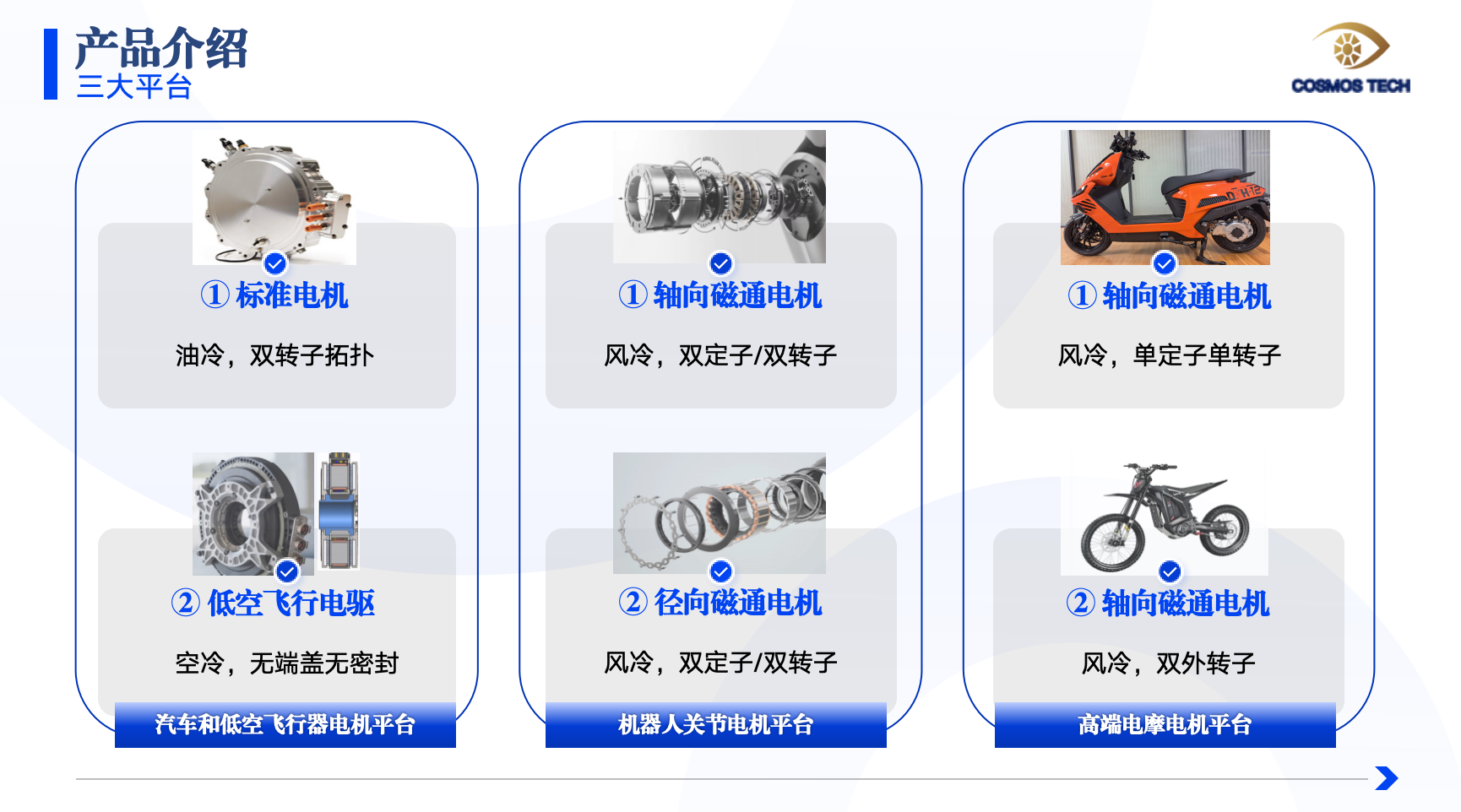 聚焦軸向磁通電機(jī)產(chǎn)品,立足軸向磁通電機(jī)軸向尺寸短、功率密度大的優(yōu)勢,積極拓展機(jī)器人關(guān)節(jié)、汽車增程發(fā)電機(jī)、雙電驅(qū)總成、高速電摩、低空飛行等應(yīng)用場景。